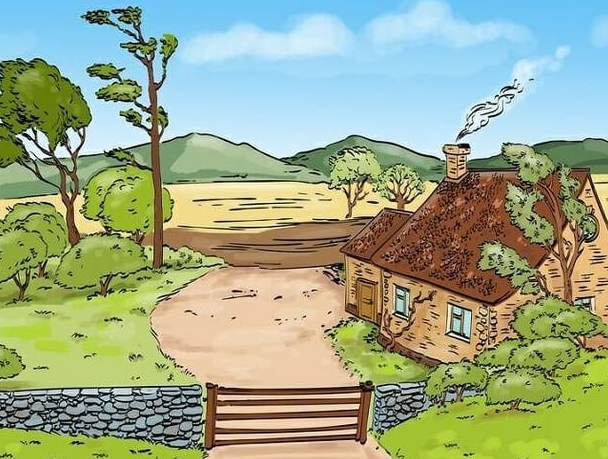 Este acertijo visual consta de poder ubicar el sitio en donde está camuflado el error que se esconde en la ilustración. A simple vista se puede ver que hay una casa de campo y a su alrededor hay distintos objetos. Lo importante es identificar qué es lo que no corresponde.