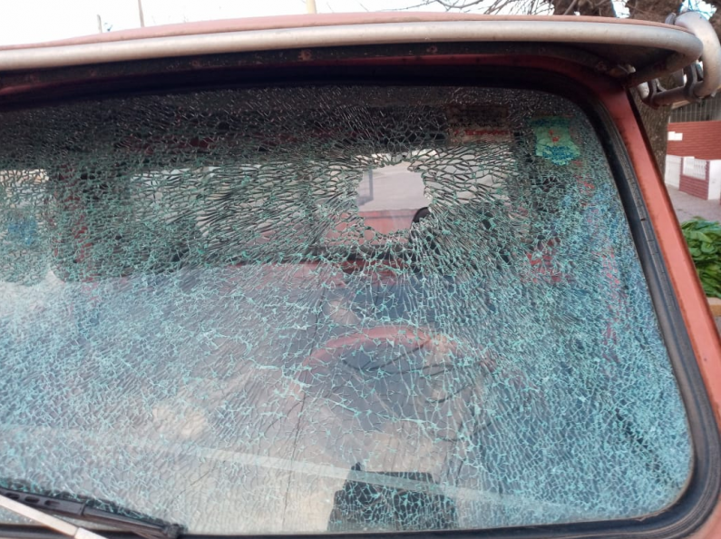 Una pick up cabina simple que regresaba de realizar tareas rurales y circulaba de San Nicolás a Pergamino recibió el impacto de la piedra.