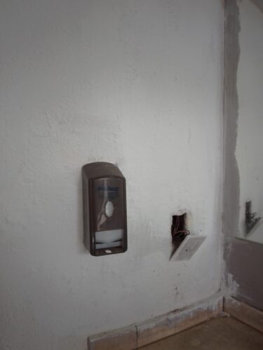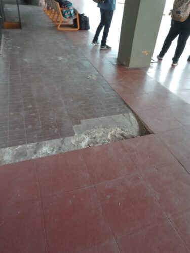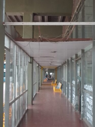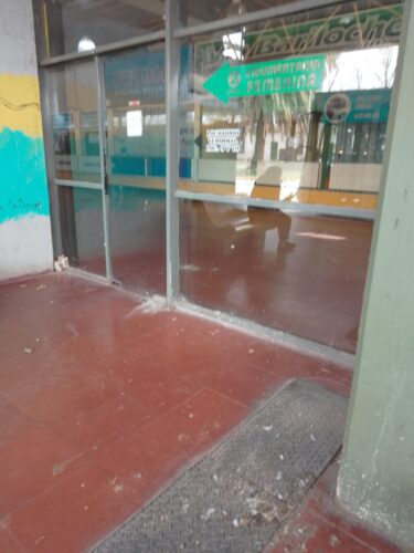 Suciedad, falta de luminaria, baldosas rotas, ausencia de puertas de vidrio (algunas de ellas tapadas con madera o clausuradas) ,mingitorios fuera de servicio, tomas de luz rotos y cables colgando son una postal cotidiana de nuestra terminal de ómnibus.Un empleado, quien no quiso dar su nombre, nos relataba «estamos minados de palomas , lo que generan mucha suciedad y enfermedades, andan por el tanque de agua lo que hace que no se pueda tomar»