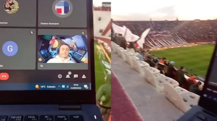 Un hincha del «Globo» no quiso perderse el partido, y decidió llevar su notebook a la cancha. La insólita situación no tardó en volverse viral en Twitter.