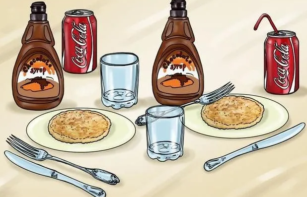 Este acertijo visual consta de poder ubicar el sitio en donde está camuflado el objeto impar de la ilustración. A simple vista se puede ver que hay una mesa con comida y bebida para dos personas, pero entre todos los elementos en la mesa hay un que es impar.