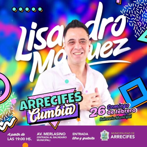 El ex cantante de “Sabroso”, oriundo de la capital del cuarteto, Córdoba, Lisandro Márquez llega por primera vez a la ciudad de Arrecifes , mas precisamente al festival “ArrecifesCumbia 2”. Este gran artista reconocido por su humildad, carisma, simpatía y talento, es el dueño de una voz caracteristica en la musica popular. Cada interpretación de Lisandro es única, transmite pasión, entrando por los oídos y llegando al corazón, lo que lo hace único.