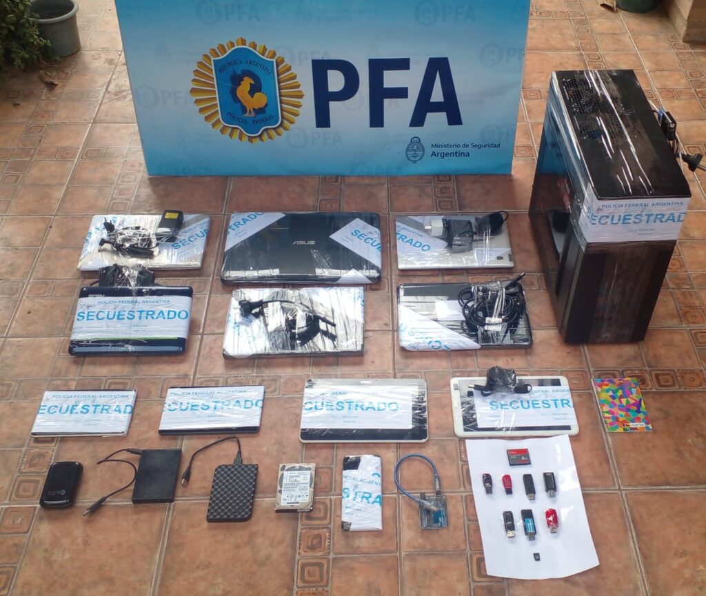 Tras los operativos, se secuestraron una gran cantidad de elementos tecnológicos como notebooks, pendrives, consolas, CD´s, memorias y discos externos.