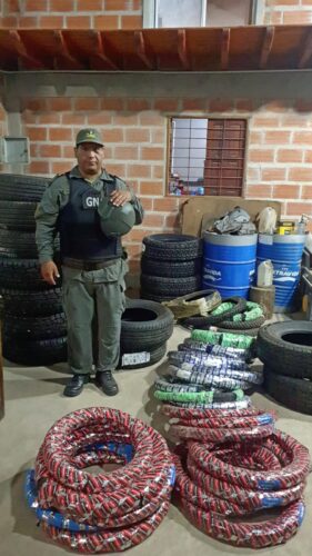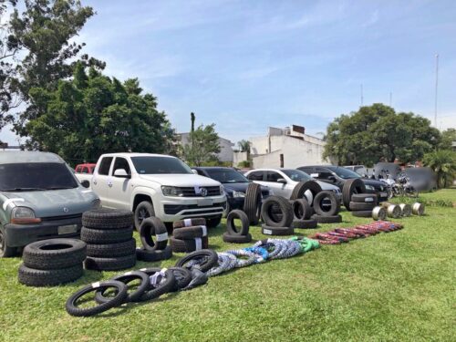 Las requisas sobre cada uno de los inmuebles permitieron el secuestro de 103 neumáticos de distintos rodados y medidas, 5 automóviles, 6 motocicletas, 21 teléfonos celulares, una máquina para contar billetes, $ 1.558.950 pesos argentinos, 200 dólares estadounidenses, 6 llantas, mercaderías varias del rubro tienda y bazar, así como distintos elementos de prueba y documentación de interés para la causa.