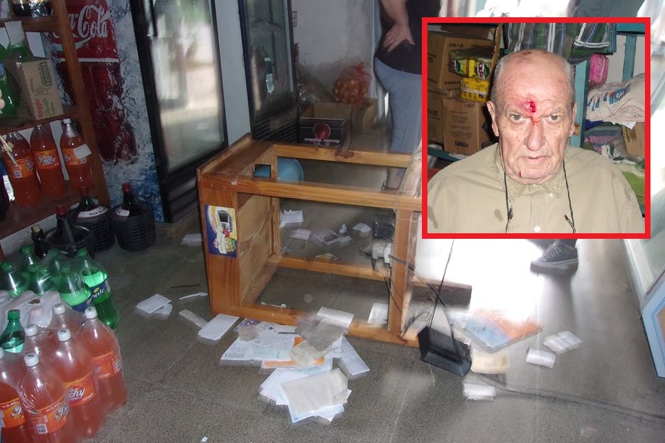Pasadas las 17 horas del martes el señor Pollini que tiene su comercio en calle 52 entre 23 y 24 de la vecina ciudad de Colon fue victima de un robo, cuando un delincuente ingresó al comercio y lo agredió físicamente luego de golpearlo le sustrajo la registradora y se alejó rápidamente del lugar, este individuo de alrededor de 20 años al parecer actuó solo y se manejaba en bicicleta, la policía investiga el hecho.