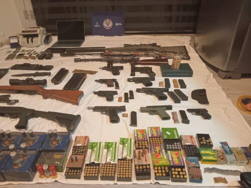 Sin embargo, para sorpresa de los agentes al llevar adelante la requisa del inmueble hallaron un verdadero arenal de armas de fuego, entre el que se destaca una ametralladora calibre 45 con inscripciones de la Gendarmería Nacional, una escopeta calibre 12, una carabina con mira telescópica, dos fusiles calibre 308 uno de ellos con silenciador, una pistola calibre 40, una pistola calibre 32, una pistola calibre 22, un pistolón del 14, dos pistolas 9 mm, una pistola calibre 380, 2 pistolas calibre 45 ACP y 1.130 municiones correspondientes a las armas en cuestión.