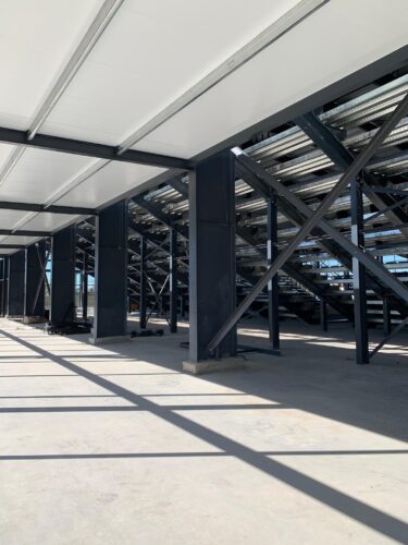 En paralelo, se están ejecutando las cenefas de cierre en las cuatro fachadas, lo que permite avanzar en la consolidación de la estructura externa. También se completó la cubierta del bar y gimnasio, sectores que formarán parte del equipamiento complementario del predio.