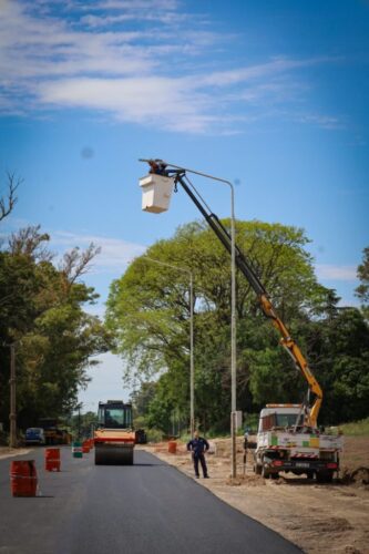 Así, a medida que avanza su pavimentación también, los equipos técnicos de la Dirección de Electromecánica y Alumbrado Público de la Secretaría de Servicios Públicos completan la iluminación LED de 200W y el tendido eléctrico aéreo.