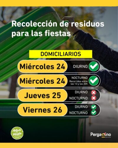 Pergamino – ¿Cómo será la recolección de residuos en las Fiestas?
