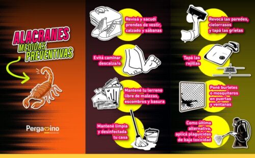 La mayoría de los accidentes con alacranes ocurren dentro del hogar. Por eso, es fundamental adoptar medidas de prevención para evitar su ingreso a las viviendas y saber cómo actuar en caso de encontrarlos o ante una picadura.