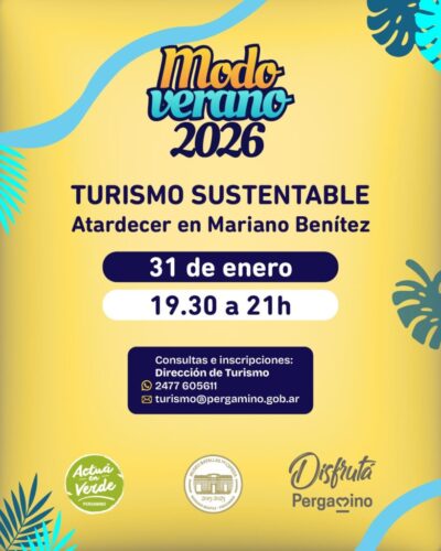 En el marco del programa Modo Verano, la Municipalidad de Pergamino, a través de la Dirección de Turismo, el Museo Batallas de Cepeda y el área de Gestión Ambiental, llevará adelante una propuesta de turismo sustentable que invita a los vecinos a recorrer la localidad de Mariano Benítez en bicicleta, disfrutando del atardecer y el entorno natural.
