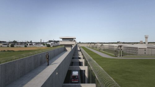 - Muros y Vigilancia: Un doble muro perimetral de 10 metros de altura rodea el predio de 500 por 500 metros. El control se refuerza con torreones cada 70 metros y una imponente torre central de 36 metros con visión de 360 grados.