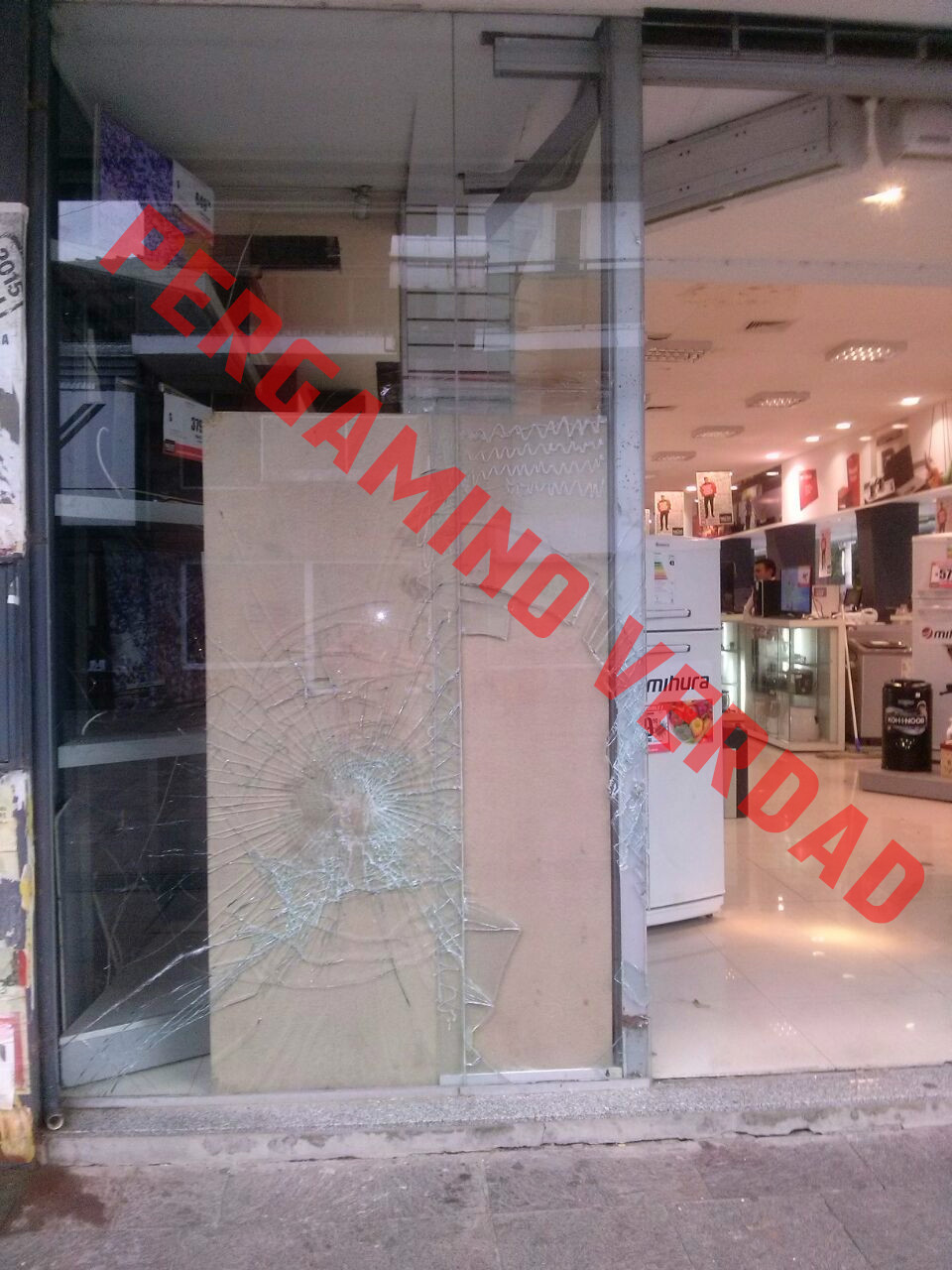 Cerca de la medianoche del martes , una pareja a bordo de una motocicleta ,rompen la vidriera del local de electrodomésticos ubicado en San Nicolas y Av. de Mayo y sustraen un LCD Sony de 42 pulgadas valuado en $ 11.297 , a posterior se dan a la fuga.