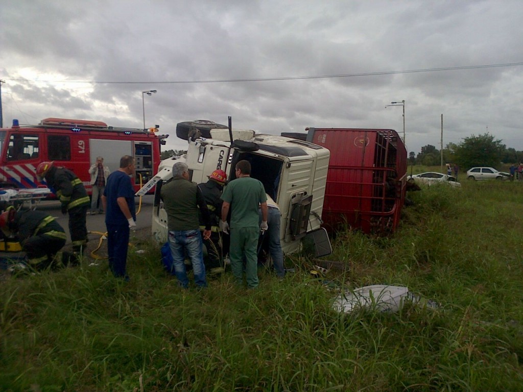 El conductor del camión quedó atrapado, producto del impacto, con golpes en un brazo y pierna derecha. Mientras que la conductora del vehículo tenía golpes en la cabeza y su hija solo sufrió heridas leves. Todos fueron trasladados al Hospital municipal “Emilio Zerboni”.