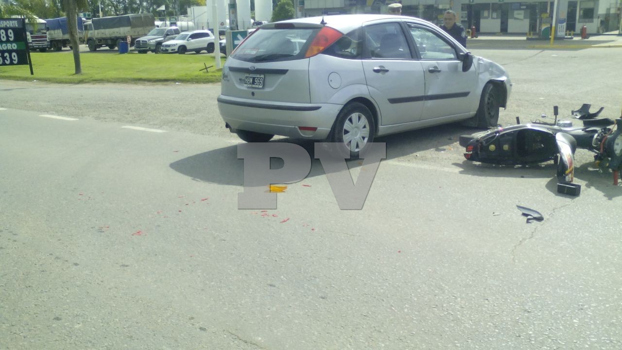 Un hombre  resultó  herido  en el mediodía de  ayer  en la intersección de  calle  Azcuénaga y Ruta 8, cuando  por  razones  que  son motivo  de  investigación , la motocicleta  en la  que  viajaba  colisionó contra  un  automóvil  marca Ford  focus  afectado  a remis.A raiza  del  impacto  el  conductor  del rodado menor  fue  trasladado  al  nosocomio local  con golpes  varios.