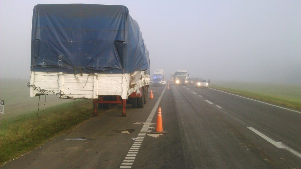 El incidente de tránsito se registró a las 3.13, cuando un Ford 1730 con semirremolque que transportaba dulces enlatados desde Bolivia chocó desde atrás a un Volvo con cítricos.