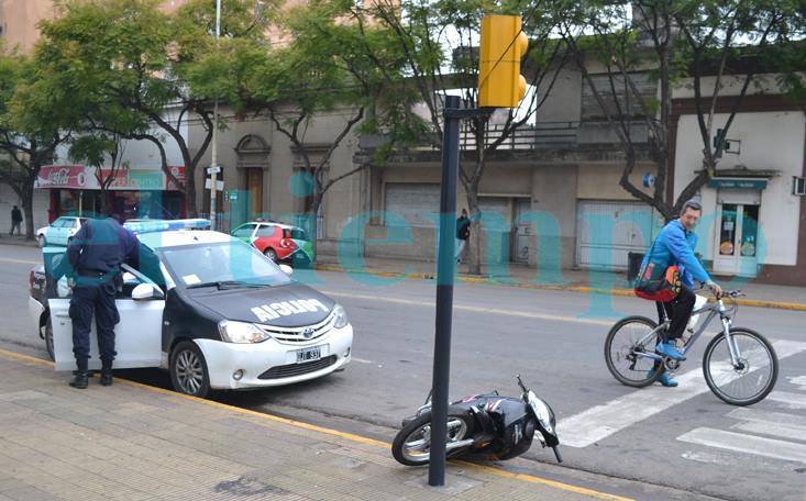 La policía interceptó a un motociclista que salió corriendo tras colisionar contra una columna de señalización en la esquina de Avenida de Mayo e Italia, el jueves a la mañana.