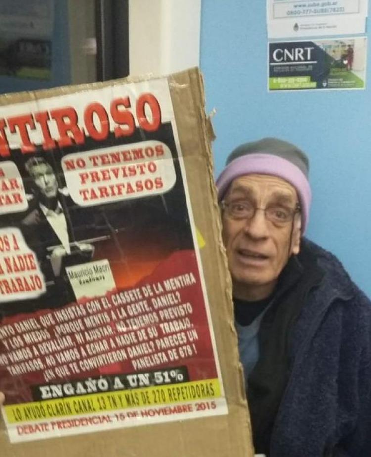En medio de la polémica por la fuerte suba de tarifas en los servicios públicos, un hombre subió al ferrocarril Mitre con un cartel en repudio al Presidente Mauricio Macri.