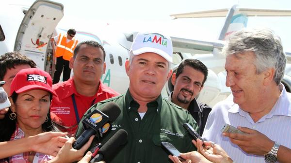 Carlos Mata Figueroa, el gobernador chavista del estado de Nueva Esparta, cuando anunció que LAMIA volaría en Margarita. Nunca lo hizo.