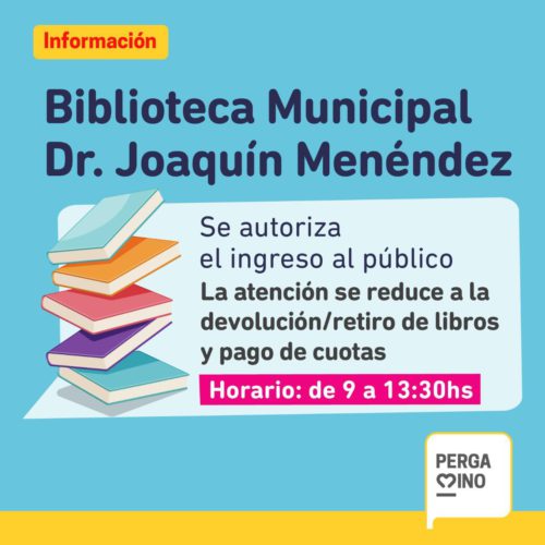 El lunes 8 de junio, la Biblioteca Municipal Joaquín Menéndez, reabrirá sus puertas para ofrecer a sus socios el servicio de préstamo de libros y cobro de cuota.