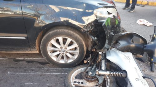 La mujer de 25 años circulaba a bordo de una motocicleta Guerrero G110 por Rivadavia de sur a norte cuando impactó, por motivos que son materia de investigación, contra un automóvil Volkswagen Suran negro, que conducía un jubilado de 76 años de edad.