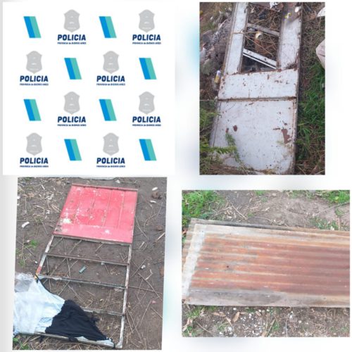 Siendo las 17.45 hs. Se da cumplimiento a la orden de allanamiento en el domicilio ubicado en Calle 4 de Acevedo donde residen dos masculinos de 22 y 19 años, en el lugar se procede al secuestro de un tirante, una reja, una ventana, una bacha, chapas varias, puertas. Consultado fiscalía actuante misma dispuso aprehensión de los masculinos por el delito de «ROBO» y posterior traslado a sede fiscalía