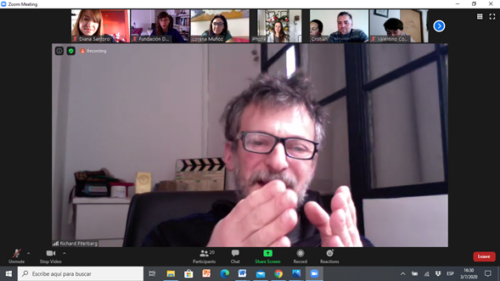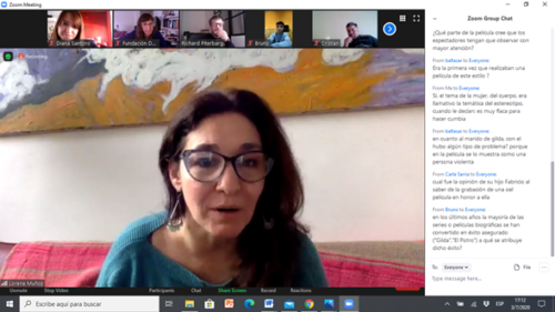 Minutos después de iniciarse el encuentro virtual y de que los referentes de la DACMarianelaTatiana, Ricky Piterbag y su Coordinadora General Marcela Carreira arreglaran los detalles técnicos e interactuaran con el grupo, se hizo presente Lorena Muñoz. Rápidamente su humildad y calidez rompió el hielo de la inhibición y los estudiantes se animaron a comenzar con sus preguntas. Cómo fue abordar un personaje como Gilda, su labor documentalista y el trabajo por conseguir los derechos, el cuidado en el trato de la memoria, la admiración y el respeto, los gustos personales, las búsquedas, la conexión y el trabajo codo a codo con Natalia Oreiro, el lugar de la mujer en el cine y en el film, entre otros, fueron temas sobre los que estos jóvenes pudieron hablar mano a mano con la realizadora de esa película que habían mirado y amado.