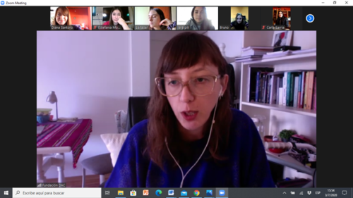 Lorena Muñoz, relatando su experiencia y respondiendo preguntas