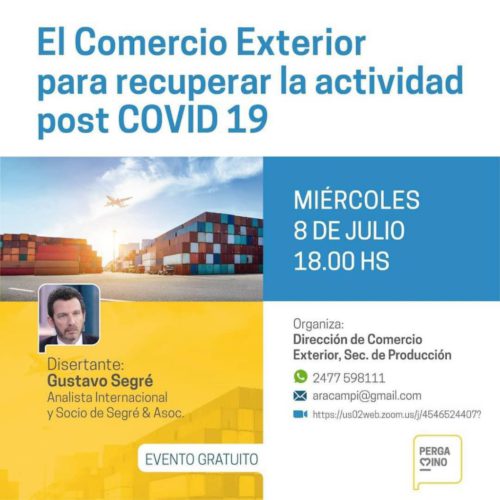 La Dirección de Comercio Exterior de la Municipalidad de Pergamino invita a la comunidad a un nuevo evento virtual: ”El Comercio Exterior para recuperar la actividad post Covid19”.