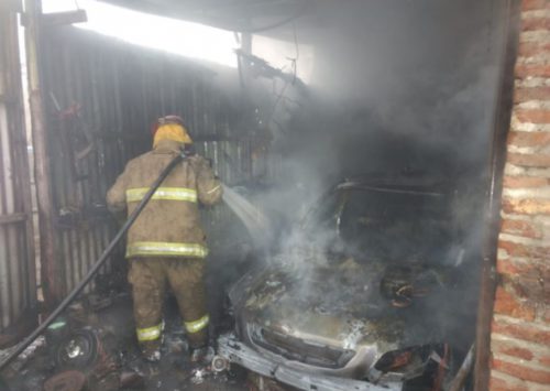 Para el morador lo más lamentable del siniestro fue la destrucción provocada por el fuego sobre un automóvil Chevrolet Astra que habría adquirido recientemente; antes de comenzar la pandemia. – Fuente: Semanario del Tiempo