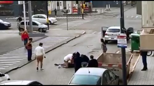 El hecho ocurrió el domingo por la tarde en inmediaciones de calle Merced y Av. de Mayo.Dos sujetos se trenzaron a golpes de puños y uno de ellos debió ser asistido por los allí presentes.