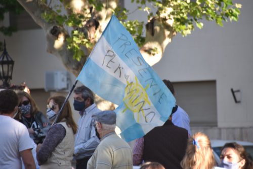 Los pergaminenses que se unieron a estos reclamos fueron acompañados de múltiples banderas celestes y blancas, globos y carteles con la frase «Pergamino Presente».