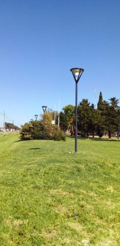 Cuadrillas de trabajo de la Subsecretaría de Control y Gestión realizaron el recambio de 16 farolas en el Parque España y 12 ejemplares led en el espacio verde de ingreso a la Terminal de Ómnibus.