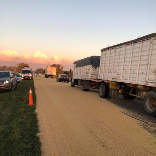 El martes a las seis y media de la tarde en el kilómetro 207 de la ruta nacional 8 a un camión Fiat se le perdió la carga de granos y obligó a dos vehículos a realizar maniobras de esquive que terminó en un impacto de ambos rodados.